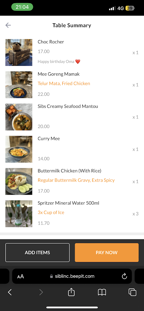 Sib Linc Cafe Menu